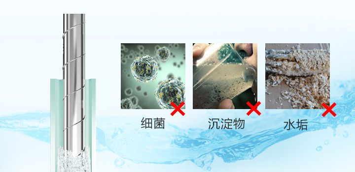 采用超聲波磁場除垢技術(shù),通過50KHz超聲波高頻磁場對水軟化抑制水垢生成。每次打開機(jī)器,螺旋磁場使水流快速旋轉(zhuǎn)清洗發(fā)熱體。