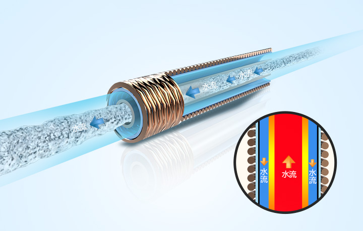 從冷水進(jìn)至熱水出,出水不觸電,整個(gè)過程隔空感應(yīng)式加熱。從根源上杜絕漏電隱患。