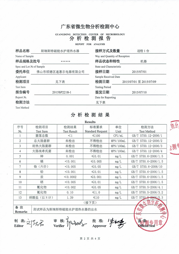 斯瑞斯特的磁能熱水器既然打著潔凈和殺菌的旗號(hào),它的凈水和殺菌能力如何,我們直接用數(shù)據(jù)說話,經(jīng)專業(yè)的檢測(cè)機(jī)構(gòu)進(jìn)行檢測(cè),經(jīng)過磁能熱水器加熱過的水,直接達(dá)到了直飲水的安全標(biāo)準(zhǔn);試問用如此潔凈,甚至可以飲用的水進(jìn)行沐浴會(huì)對(duì)皮膚造成傷害嗎?而且水質(zhì)經(jīng)過磁能熱水器加熱后還會(huì)被磁化,磁化過的水富氧、呈堿性,滲透力和潔凈力強(qiáng),有呵護(hù)肌膚、深度補(bǔ)水的作用,是眾多愛美人士沐浴的不二之選。