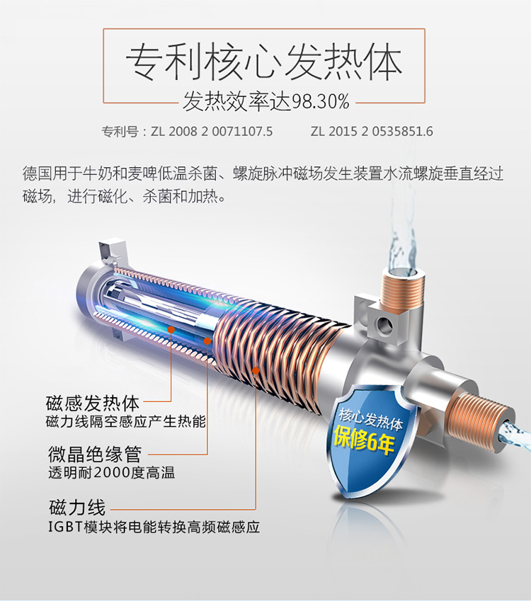 “斯瑞斯特”的立命之本是安全和健康,市面上的熱水器沒(méi)有哪個(gè)品牌敢打包票說(shuō)自家的熱水器絕對(duì)安全,而斯瑞斯特就敢作出這樣的保證。因?yàn)樗谷鹚固卮拍軣崴鞯墓ぷ髟韺?shí)現(xiàn)了水電分離,從根源上解決了熱水器漏電觸電的問(wèn)題??蛻糁灰獊?lái)到來(lái)到斯瑞斯特的廠房,我們的工作人員都能作出演示,工作人員會(huì)一邊摸著發(fā)熱體,一邊對(duì)鋼管進(jìn)行加熱,這個(gè)演示動(dòng)作體現(xiàn)了斯瑞斯特磁能熱水器能夠?qū)λM(jìn)行隔空加熱,讓水和發(fā)熱體不直接觸碰就能進(jìn)行加熱,完全改變了大家對(duì)電熱水器的傳統(tǒng)看法。