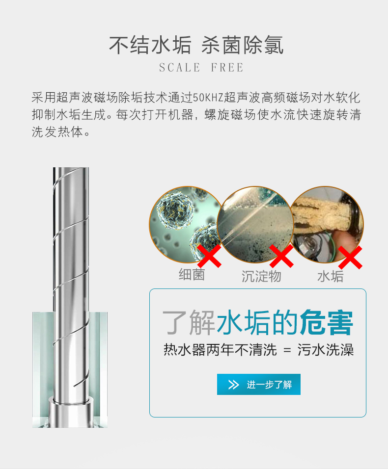作為新興的熱水器品牌,斯瑞斯特憑借靈敏的市場(chǎng)觸覺,在10年前就引進(jìn)德國(guó)食品級(jí)、工業(yè)級(jí)的磁能技術(shù),經(jīng)過6年研發(fā),將磁能應(yīng)用在了熱水系統(tǒng)中。經(jīng)過斯瑞斯特磁能熱水器加熱過的水,會(huì)被高頻磁力線場(chǎng)切割,直接滅殺水中99.8%的細(xì)菌、病毒和微生物,直達(dá)無菌飲用水標(biāo)準(zhǔn);除此之外,斯瑞斯特磁能熱水器還運(yùn)用超聲波磁場(chǎng)對(duì)水進(jìn)行軟化、抑制水垢生成,再通過專利螺旋導(dǎo)流自動(dòng)沖刷技術(shù)清洗發(fā)熱體,保證機(jī)器和水質(zhì)的潔凈。