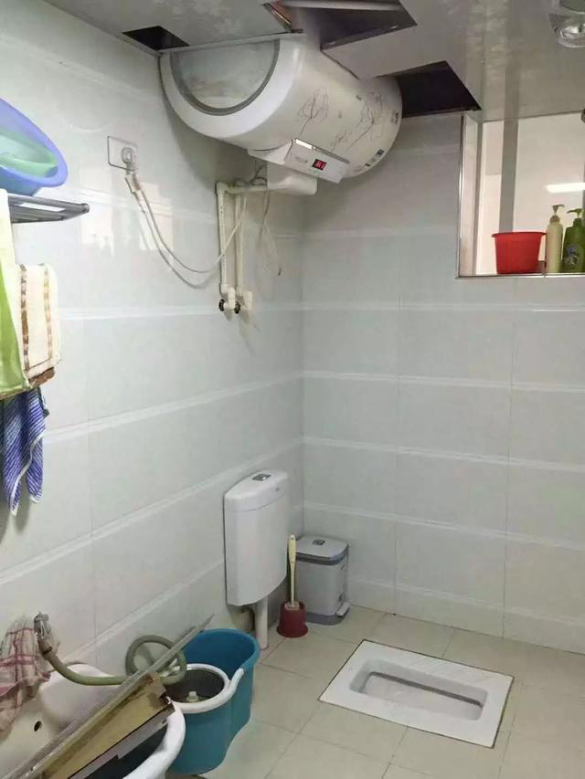 一個衛(wèi)生間的面積就那么小,安裝一部如此之大的儲水式熱水器在頂部,就好像頭頂上總懸著一把刀,真是讓人倍感壓抑。衛(wèi)生間要兼顧洗浴、如廁、刷牙洗臉等等的生活行為,像上圖這么安裝,洗個澡就把周圍都濺濕了,先不說衛(wèi)生的問題,就怕有人來如廁都會滑倒,而且到了潮濕的天氣更是讓人煩躁。